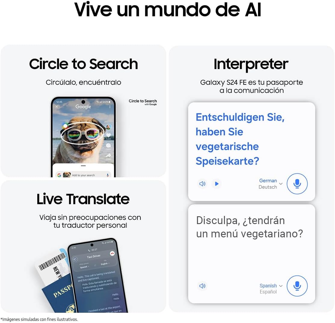 - Conoce Galaxy S24 FE con Galaxy AI, donde cada foto desata una creatividad sin límites. Sumérgete en la experiencia completa de Galaxy AI y desbloquea innumerables formas de explorar tu imaginación. Utiliza Photo Assist para cambiar fácilmente el tamaño, mover y eliminar objetos no deseados en tus fotos. Transforma imágenes cotidianas en impresionantes obras de arte con nuestra herramienta de edición asistida por AI.